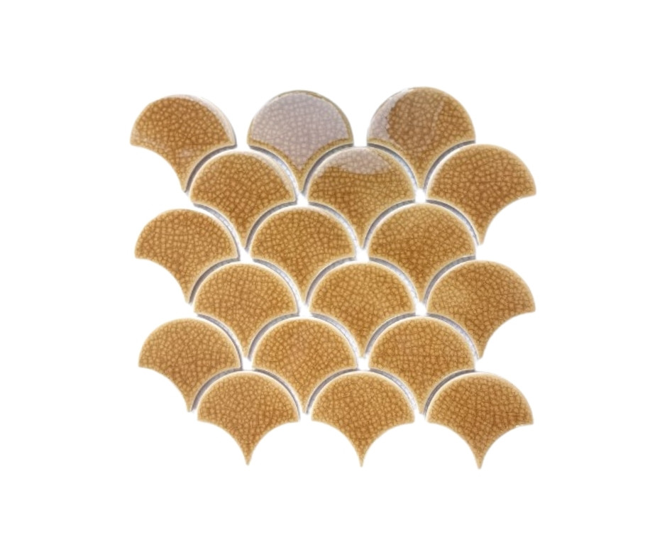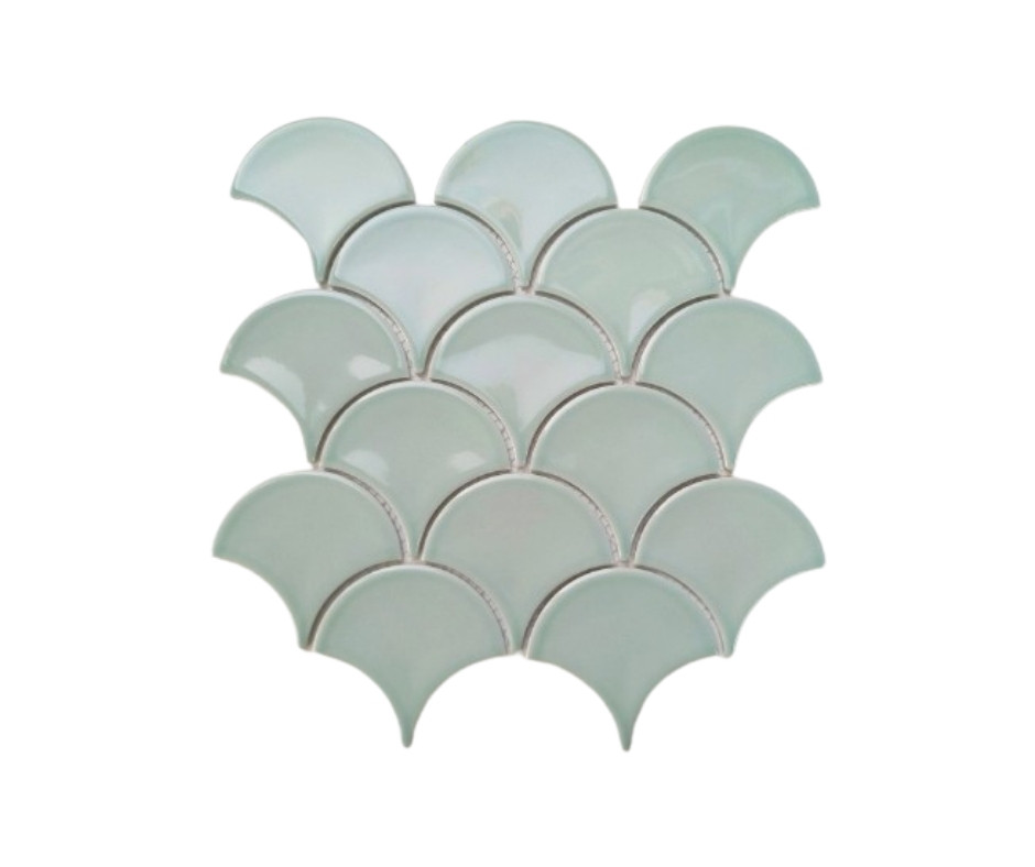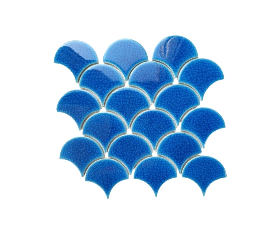 Chất liệu của gạch vảy cá rất đa dạng: ceramic, porcelain, hay mosaic men bóng. Màu sắc thì phong phú vô cùng, từ trắng – xám – đen tối giản đến xanh lam, xanh ngọc, hồng pastel, vàng đồng sang trọng. Khi ghép lại, chúng tạo nên hiệu ứng thị giác đặc biệt: vừa gần gũi thiên nhiên, vừa mang phong thái hiện đại.