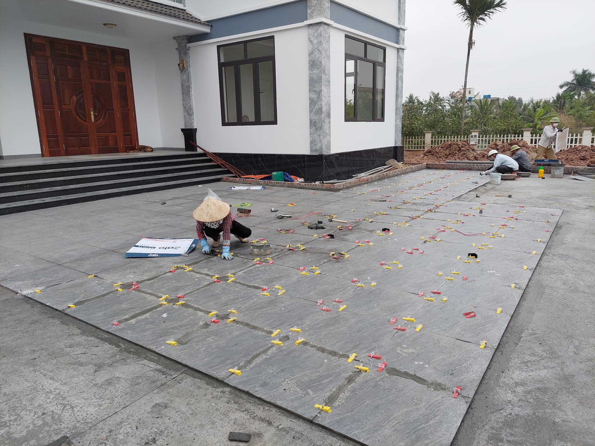 Lát sàn bằng gạch vân đá marble khổ lớn nhập khẩu, tạo sự sang trọng tuyệt đối cho công trình biệt thự